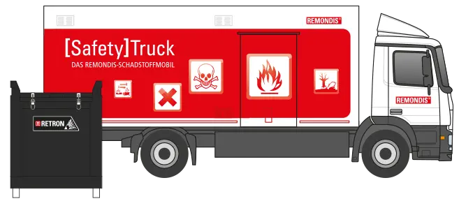 Mit unserem SafetyTruck übernehmen wir im Auftrag von Kommunen die mobile Sammlung gefährlicher Abfälle. Bürger können so Schadstoffe unkompliziert und fachgerecht entsorgen.