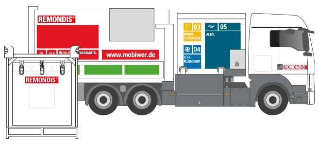 Mit unserem Spezialfahrzeug MOBIWER entsorgen wir bis zu fünf Werkstattabfälle mit nur einer Anfahrt.